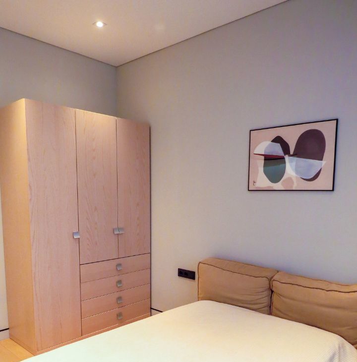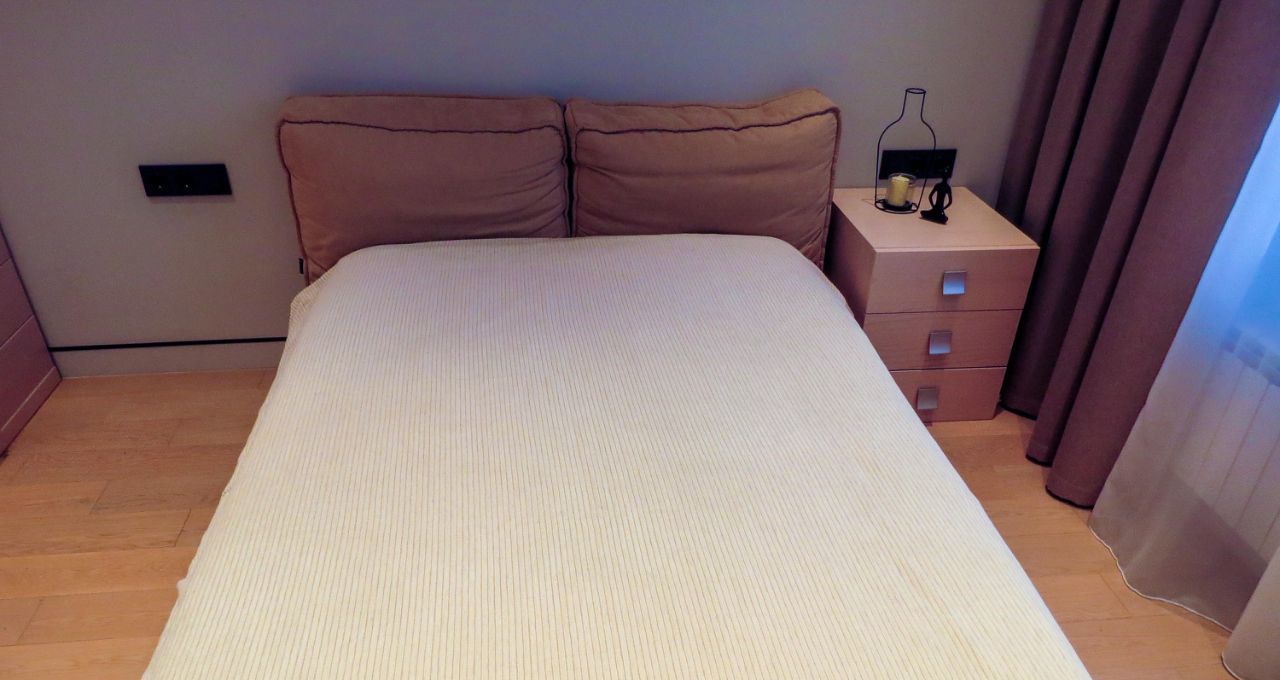 В СПАЛЬНЕ комфортная двуспальная кровать и вместительный шкаф.