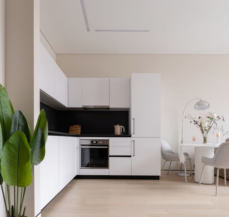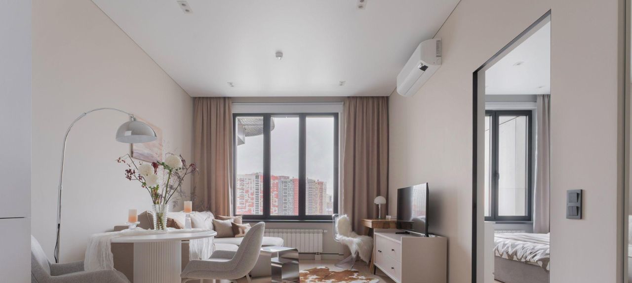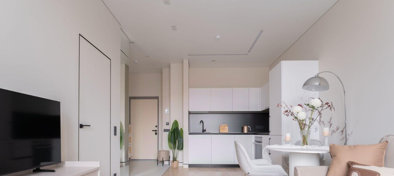 Продумана каждая деталь для вашего комфорта и уюта. Современная функциональная мебель и бытовая техника: встроенная кухня, удобная кровать с ортопедическим матрасом, диван-трансформер, который превращается в полноценное спальное место. Рабочая зона с эргономичным компьютерным столом. Проведен высокоскоростной интернет, установлены 2 кондиционера. Предусмотрены разные сценарии освещения и много удобных мест хранения.