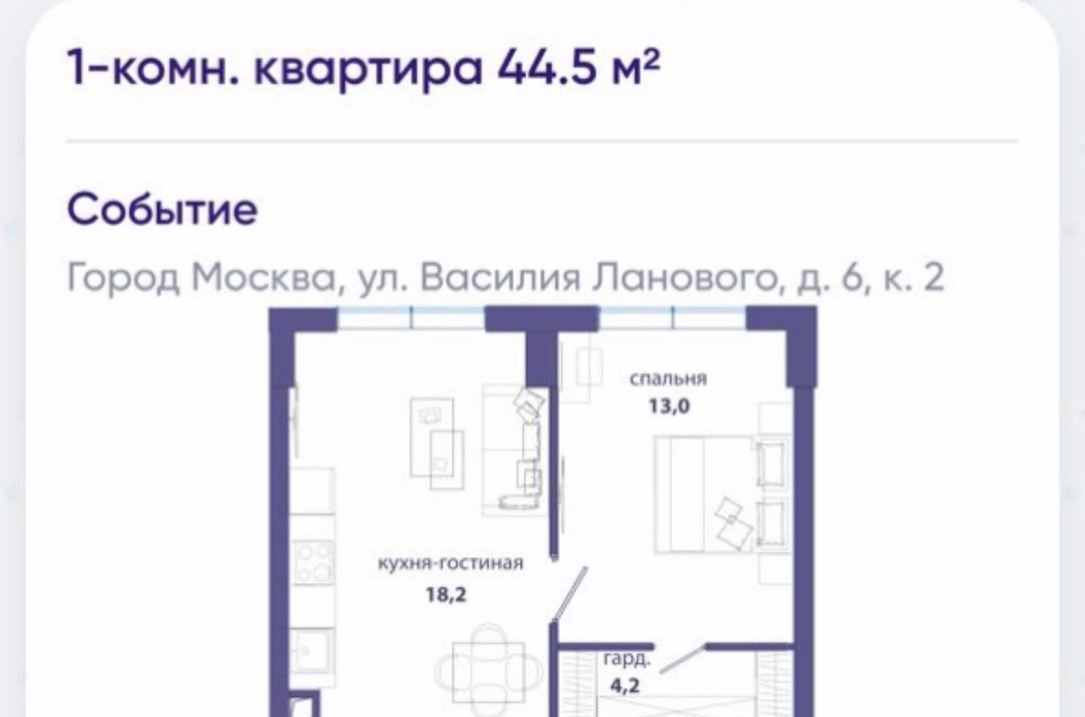 1-к кв. Москва ул. Василия Ланового, 6к2 (44.5 м²)