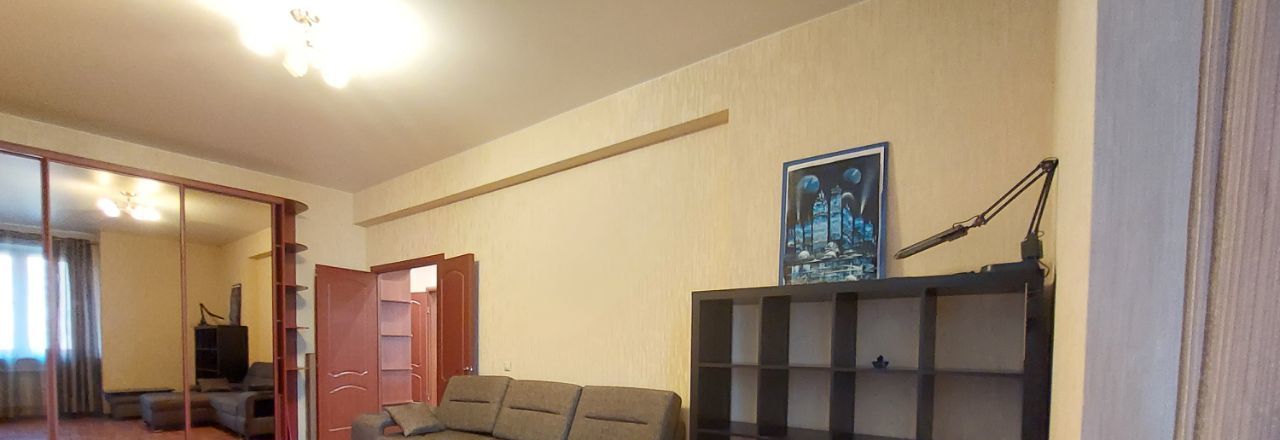 * В комнате 23 м2 - вместительный зеркальный шкаф купе, 2-х спальный угловой диван,