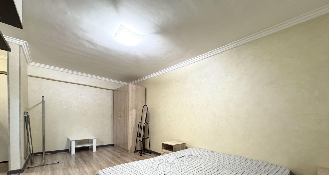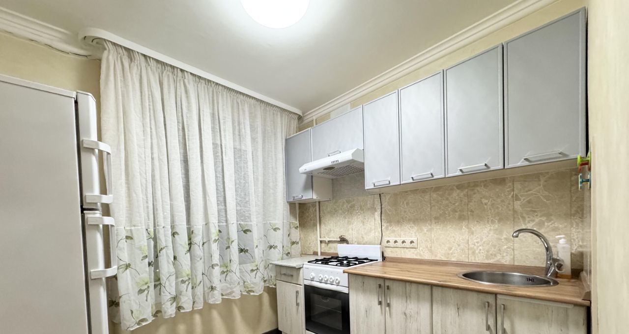 Мебель и техника: Вся необходимая мебель для комфортного проживания (кухонный гарнитур, шкаф, кровать). Техника: холодильник, стиральная машина, плита)