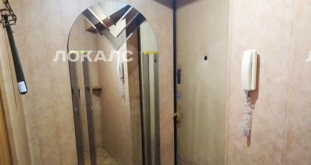 В прихожей зеркало, вешалка, тумбочка. Домофон.