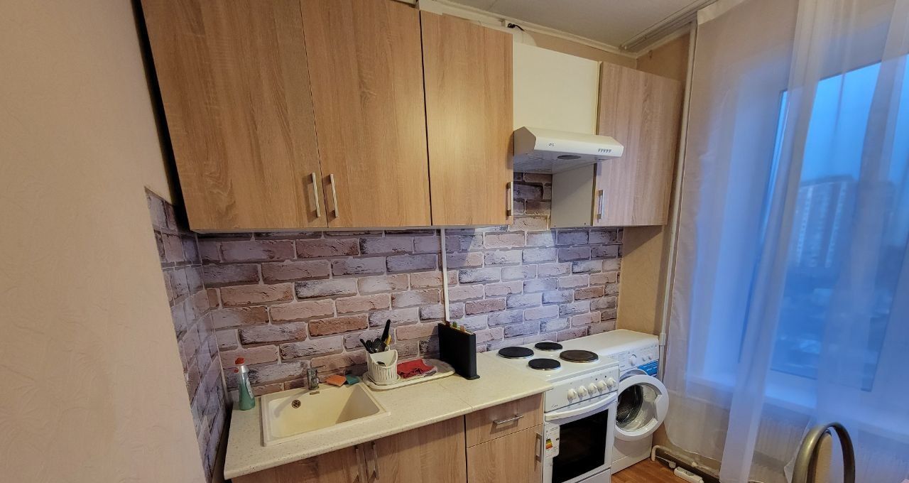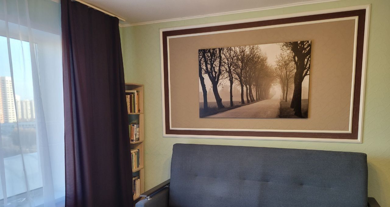 Сдаётся однокомнатная квартира на девятом этаже панельного дома. Квартира оборудована всем необходимым для комфортного проживания (телевизор, диван, шкафы, пылесос, утюг и пр.). Кухня также оснащена необходимой техникой: электрическая и микроволновая печи, холодильник, стиральная машина, чайник и пр.