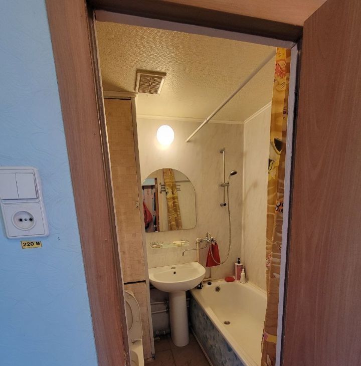Санузел совмещённый. В подъезде работает пассажирский лифт. Во дворе имеются открытая парковка и спортивная площадка.