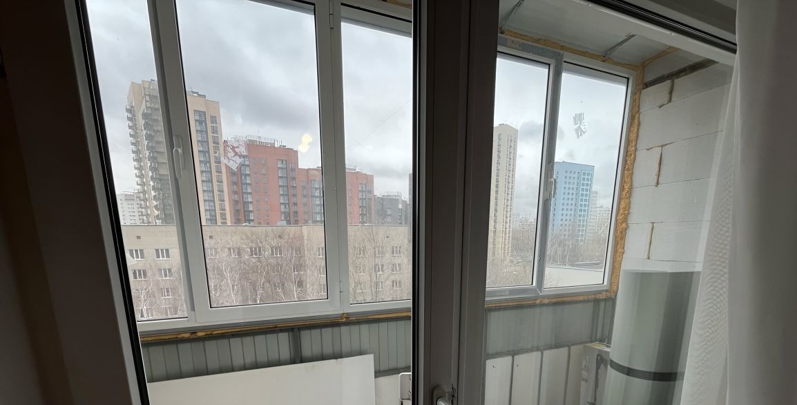 Вся площадь 40 м2, комната 20 м2, кухня 10 м2, большой застекленный балкон