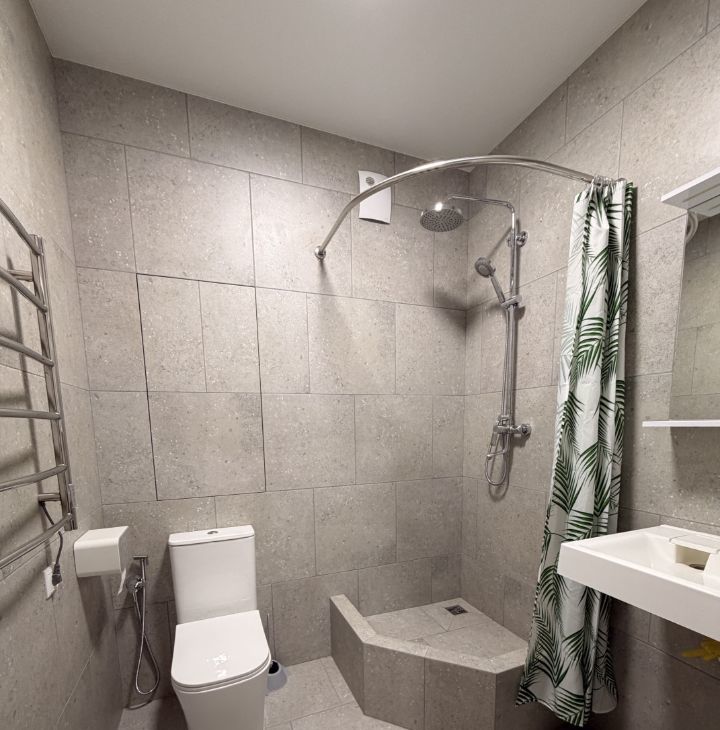По планировке большая кухня-гостиная, изолированная спальня с лоджией, совмещенный с/у с душевой и просторная прихожая. В прихожей и с/у выведены теплые полы.