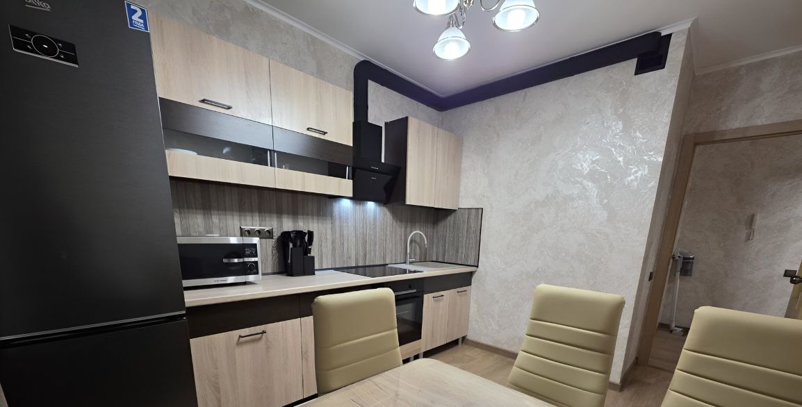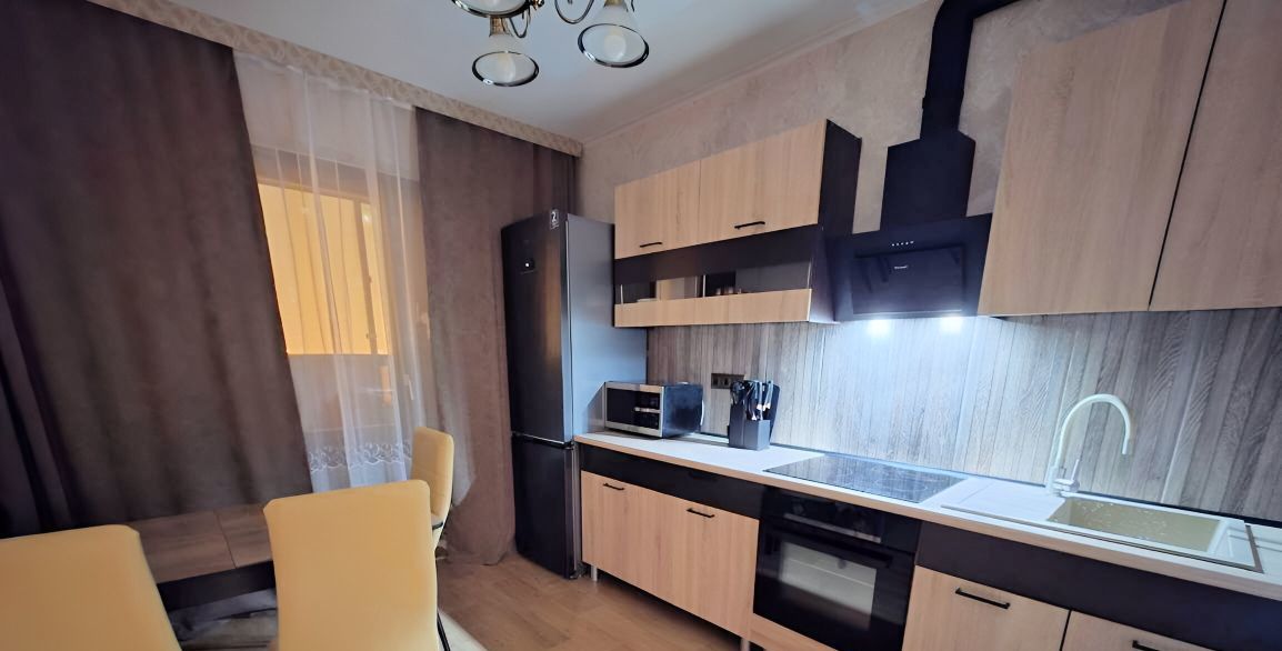 В квартире сделан качественный евроремонт. Все комнаты полностью меблированы, что позволяет сразу же въехать и комфортно жить. На кухне и в комнате установлена современная мебель. В наличии вся необходимая техника: холодильник, телевизор и стиральная машина. Ванная комната оборудована душевой кабиной. Окна выходят на улицу, обеспечивая хорошее естественное освещение. Также имеется балкон, где можно наслаждаться свежим воздухом.