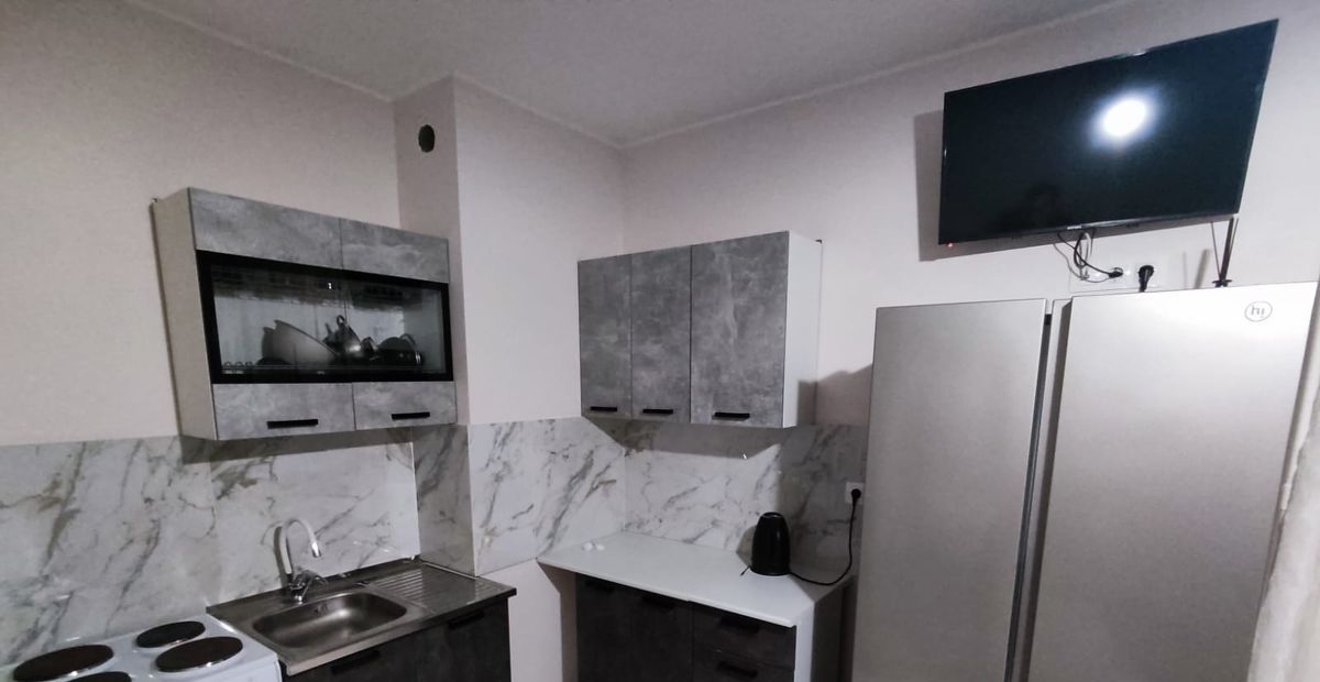 КВАРТИРА СТУДИЙНОГО плана .На кухне гарнитур , Хол, стиральная машина . В комнате двух спальная кровать , стол ,шкаф, тв . Рассматривают одного или пару.