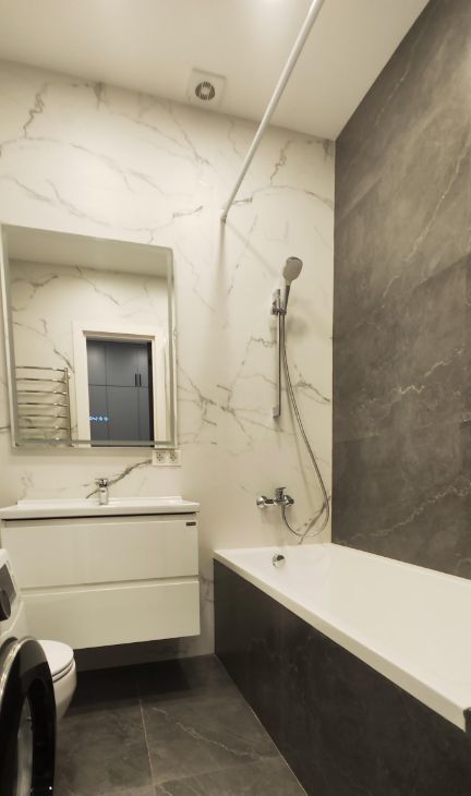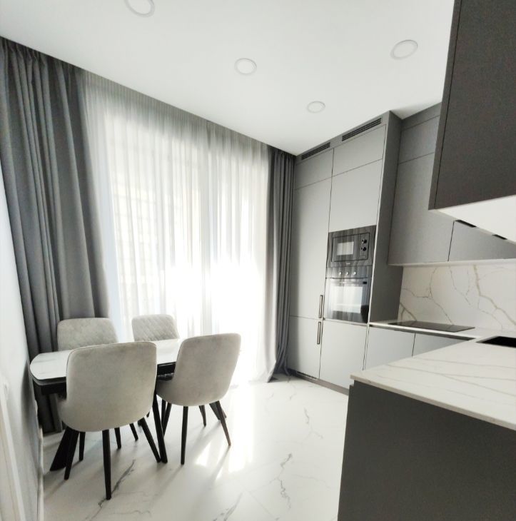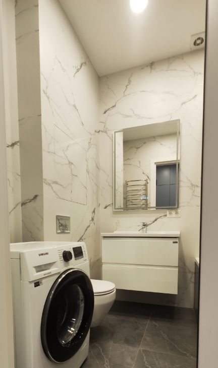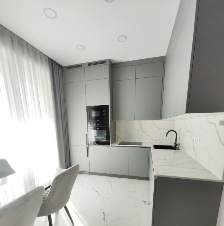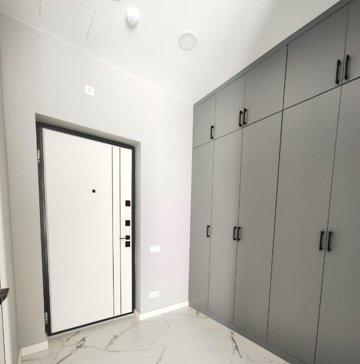 Выполнен качественный евроремонт в современных светло-серых тонах.