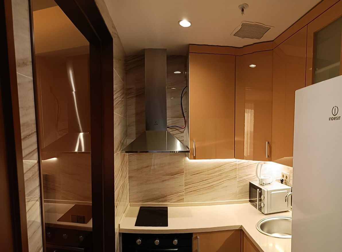 Апартаменты имеют дизайнерский ремонт и уютную обстановку. Мебель в комнате и на кухне создает атмосферу домашнего уюта. Из техники в вашем распоряжении кондиционер, холодильник, телевизор и стиральная машина, что делает проживание максимально комфортным.