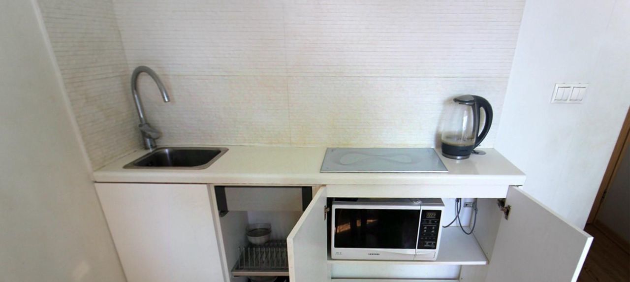 В квартире высокие потолки 2,7 м, новый дом, чистый подъезд. Всё необходимое есть. Телевизор + интернет от МТС, микроволновка, хорошая стиральная машина. На период отключения горячей воды есть дополнительный электрический проточный водонагреватель. В комнате удобная двуспальная кровать, вместительные шкафы. Установлен кондиционер.