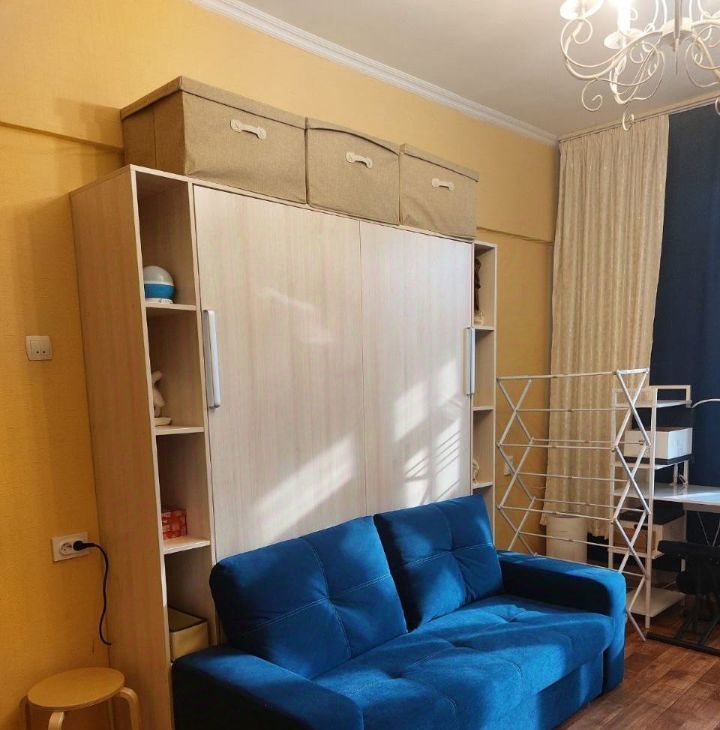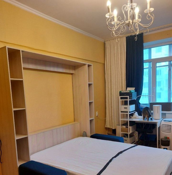 • Кровать-трансформер с полноценным большим матрасом — именно кровать, а не диван-кровать; редкое решение с вертикальным подъёмом, которое заметно освобождает пространство комнаты