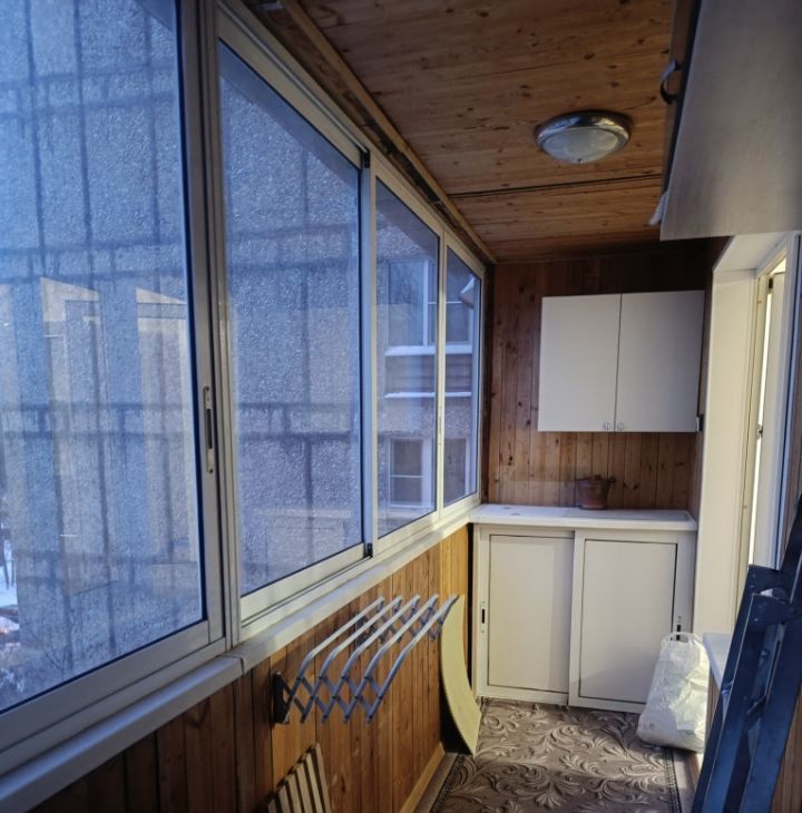 Просторная застекленная лоджия длиной 6 метров отличное место для утреннего кофе или вечернего отдыха.