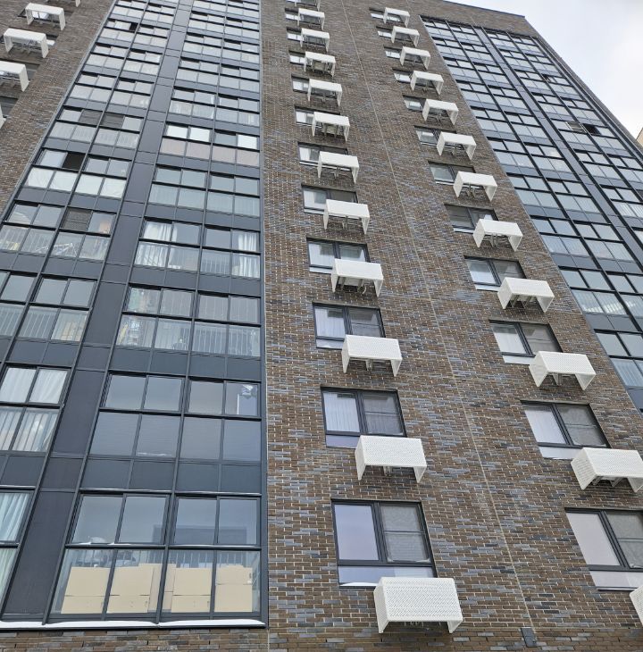 Современные входные подъездные группы с выходами во двор и на улицу. Благоустроенная детская площадка во дворе по концепции двор без машин. В доме установлены пассажирский и грузовой лифты, а также имеется подземная парковка. Придомовая парковка большая и достаточная. Даже зимой всегда есть места.