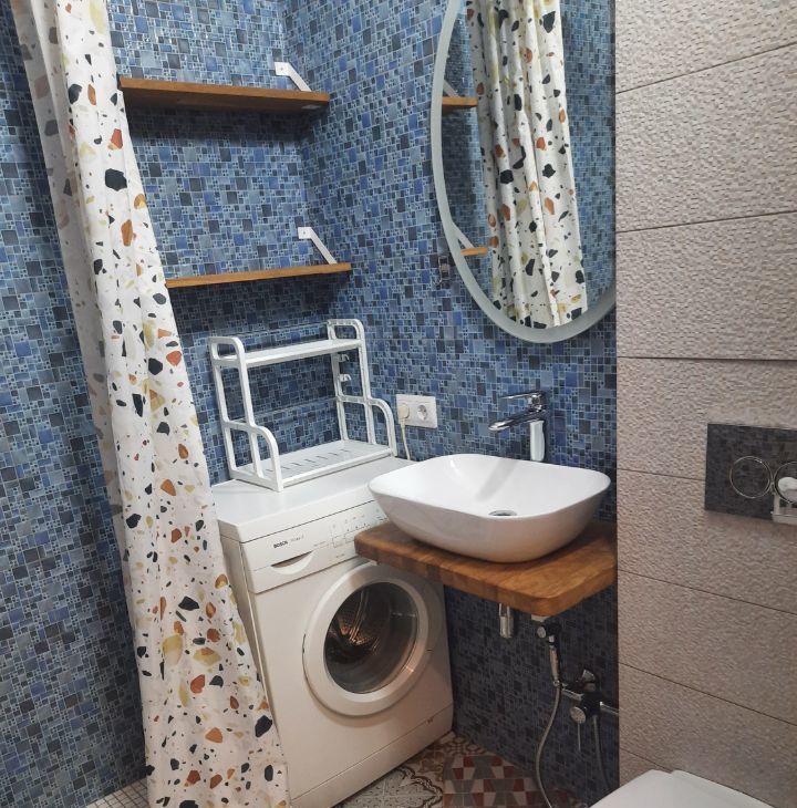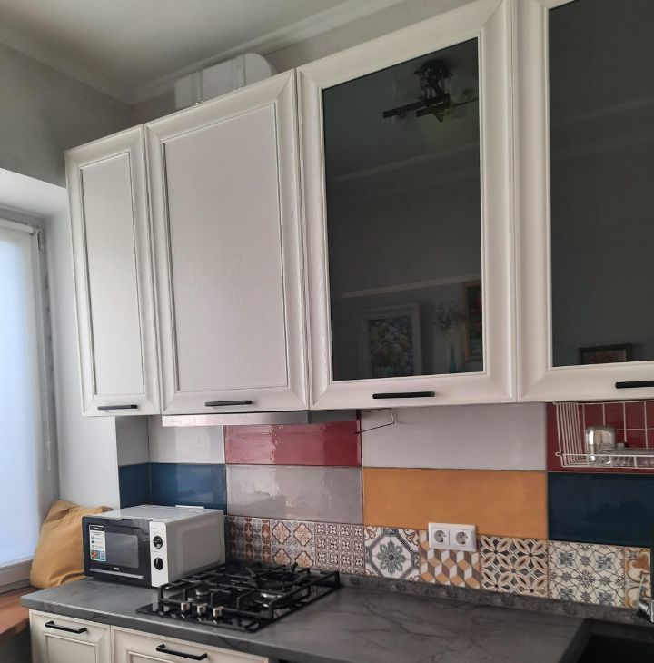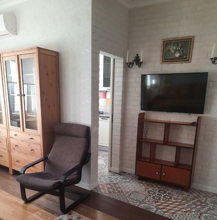 В квартире есть всё необходимое для комфортной жизни: мебель из натурального дерева на кухне и в комнате, необходимая техника — стиральная и посудомоечная машины, телевизор, кондиционер и холодильник. Интернет.