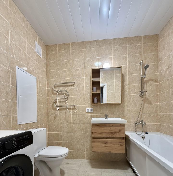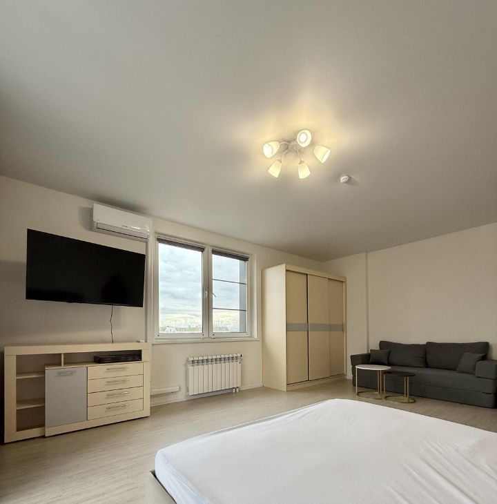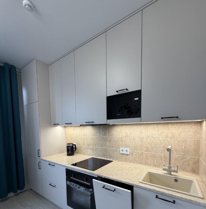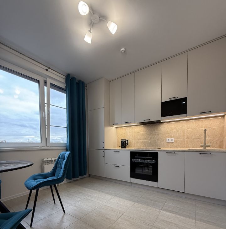 В квартире сделан качественный евроремонт. Изолированная комната, полноценная кухня и просторная лоджия. Есть вся необходимая мебель и техника, подключена посудомоечная машина, есть фильтр для воды. Паркинг под шлагбаум.