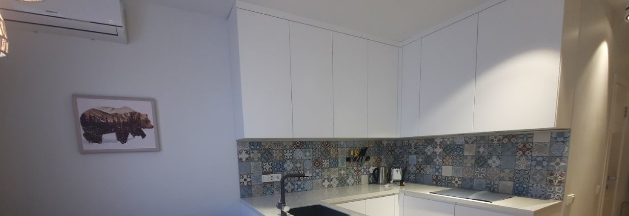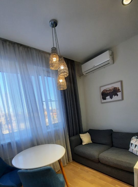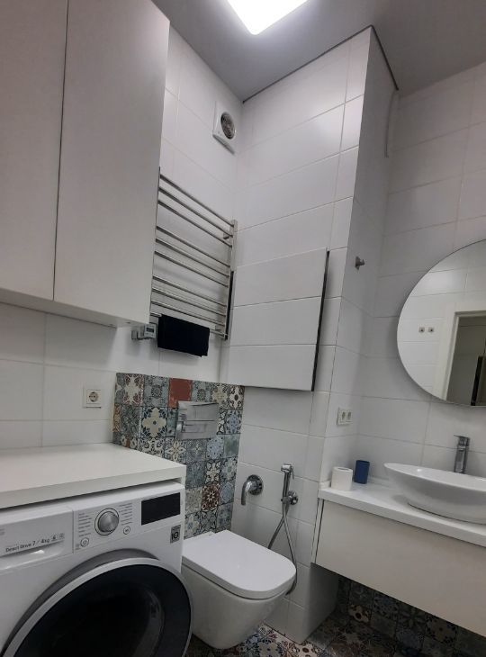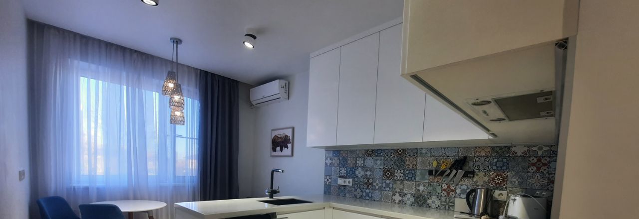 В квартире сделан евроремонт, а пространство оформлено с современным вкусом. В комнате гардеробная. В наличии вся необходимая мебель как на кухне, так и в комнате. Квартира оборудована кондиционером, холодильником, телевизором, посудомоечной и стиральной машинами. Санузел совмещённый, с ванной, что обеспечивает комфортные условия для проживания.