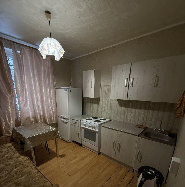 В наличии вся необходимая мебель на кухне и в комнате, а также техника: холодильник и стиральная машина. Просторная жилая площадь — 20 кв. м, кухня — 8 кв. м. Санузел раздельный, оборудован ванной. Окна выходят во двор, поэтому в квартире тихо и комфортно.