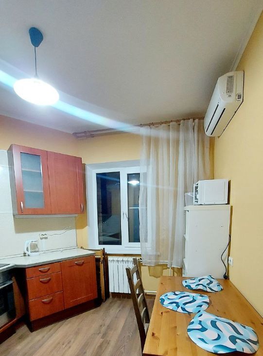 В наличии вся необходимая мебель как на кухне, так и в комнате, а также современная бытовая техника: кондиционер, холодильник, посудомоечная и стиральная машины, телевизор. Санузел совмещённый, с ванной. В квартире есть лоджия, где можно обустроить зону отдыха или хранение.