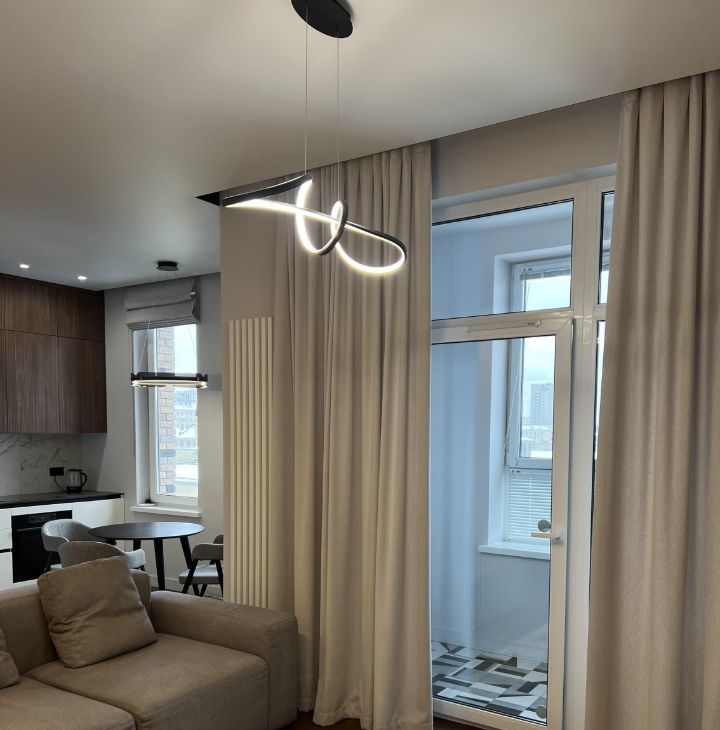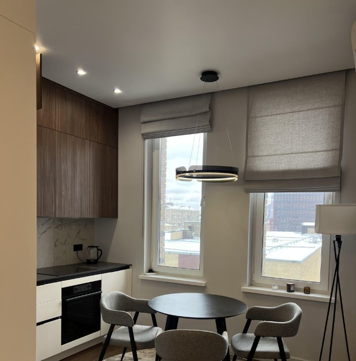 Из окон открывается великолепный вид на ночную Москву, с 7го этажа, что обеспечивает тишину в квартире.