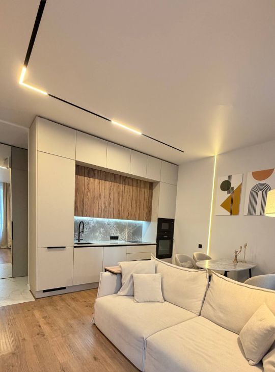 Сдаётся квартира Евродвушка, ( ранее не сдавалась) дорогостоящий ремонт, из качественных материалов. ( на кухне каменная столешница и обеденный стол ) Всё делалось для себя! Квартира укомплектована качественной жилой мебелью, и бытовой техникой. Балкона нет. Кондиционер. Бойлер. Два санузла. Огороженная территория, видеонаблюдение, двор без машин.