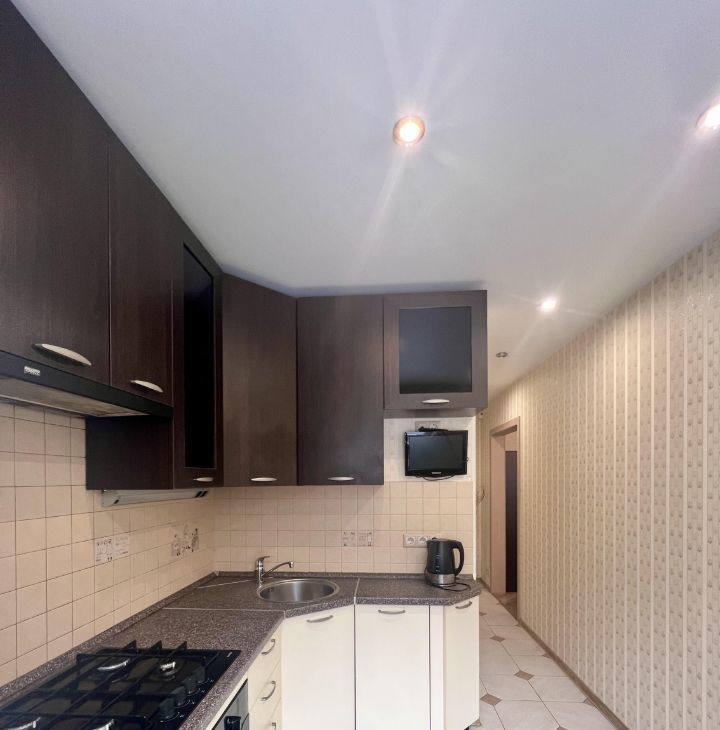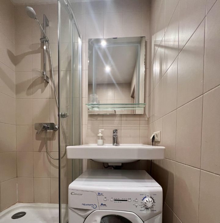 Квартира с евроремонтом, что делает её особенно привлекательной для аренды. В квартире есть всё необходимое для комфортного проживания: холодильник, телевизор, стиральная машина. Обстановка включает мебель как на кухне, так и в комнате, поэтому можно сразу заселяться. Санузел совмещённый, оборудован современной душевой кабиной.