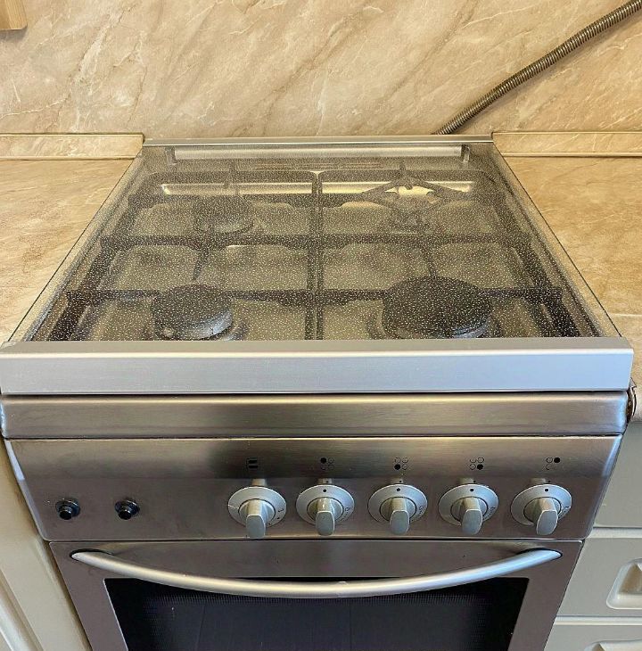 кухня: гарнитур с бытовой техникой - холодильник большой, плита газовая и духовой шкаф Gorenje, микроволновка, стол, 2 стула и 2 табуретки, посуда;