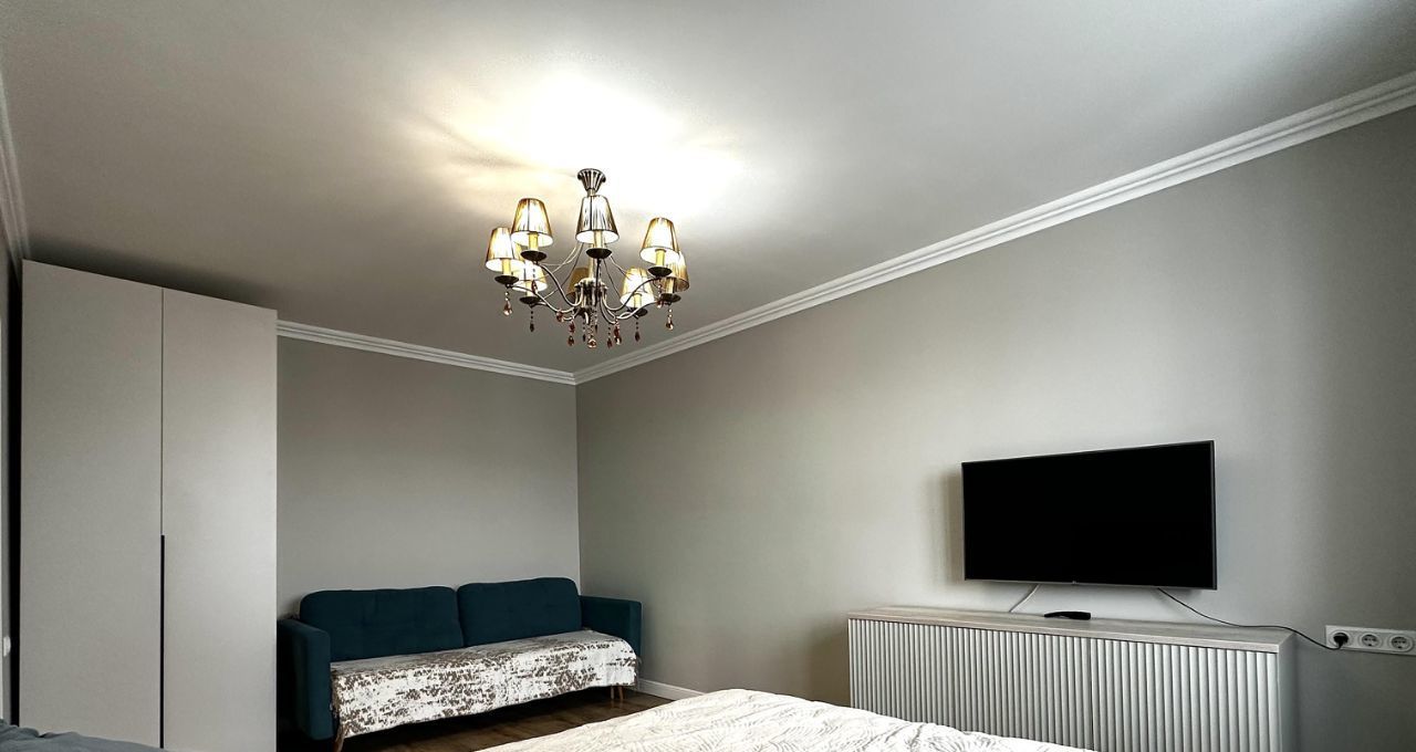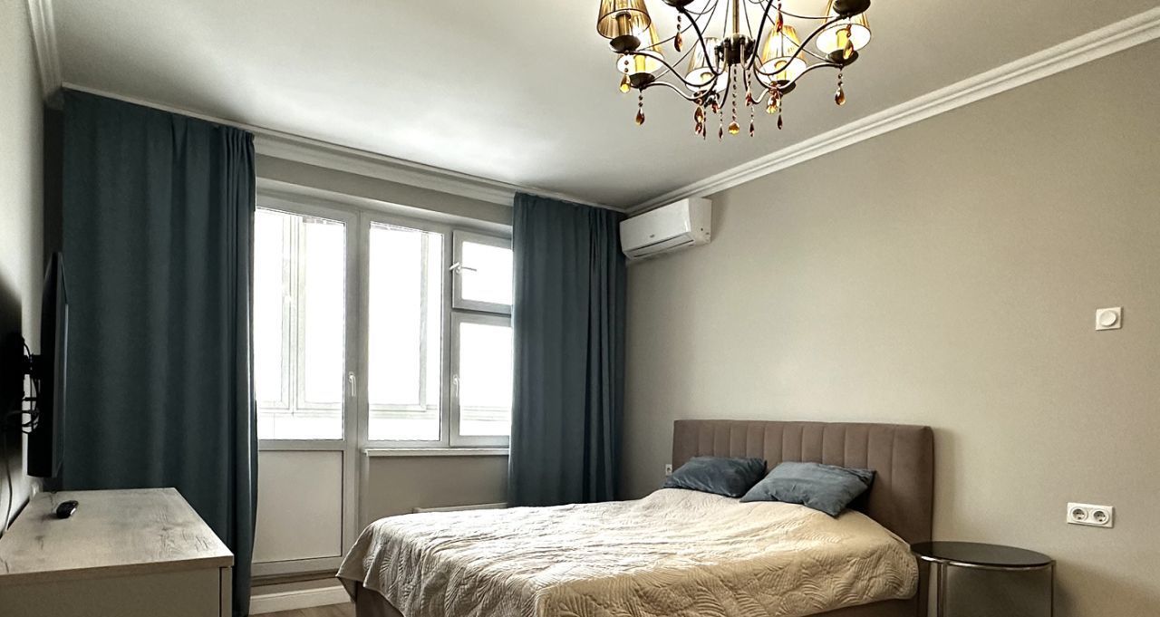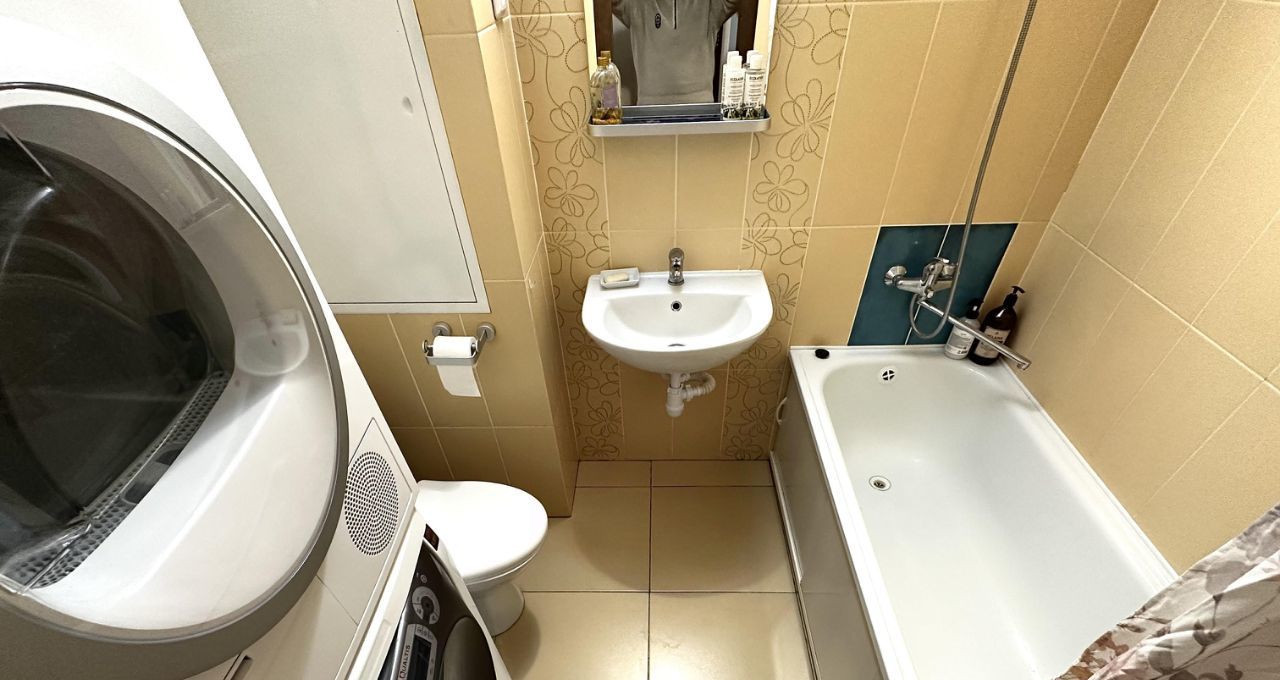 Качественный евроремонт. В комнате и на кухне есть вся необходимая мебель. Из техники — кондиционер, холодильник, телевизор и стиральная машина. В ванной установлена ванна. Квартира оборудована интернетом.