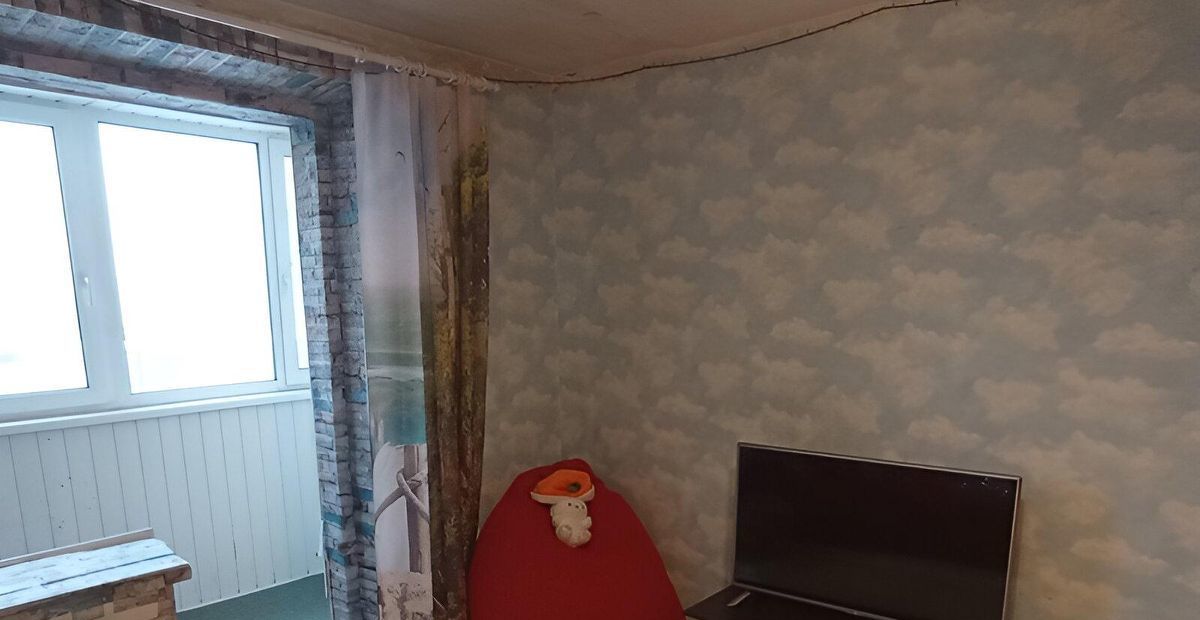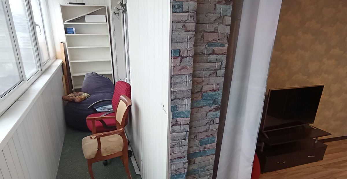 Комната разделена на зоны - спальная и гостинная - доп. объединена с лоджией, панорамным видом на район.