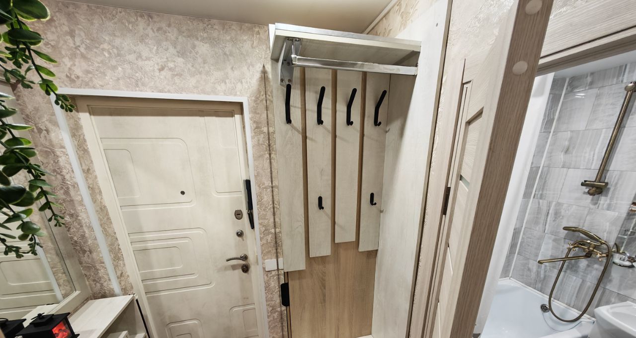Есть нужные в быту хоз.принадлежности, средства для поддержания чистоты, утюг, гладильная доска, напольная раскладная сушилка для белья, а также стильные предметы декора и домашнего уюта.
