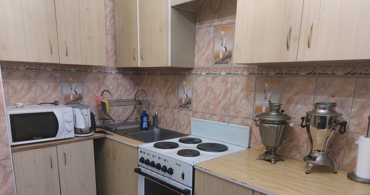 Квартира оборудована кухонным гарнитуром, удобной мебелью и бытовой техникой: