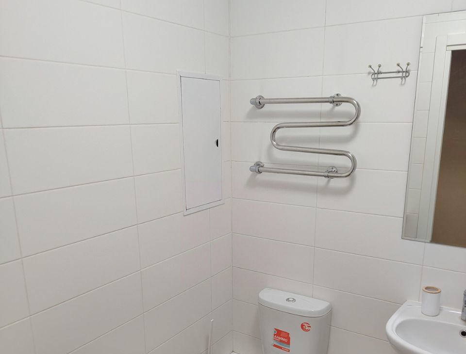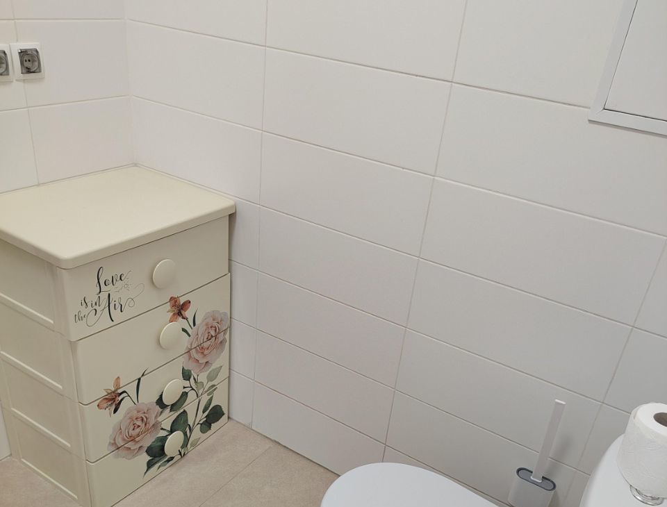 Санузел совмещённый. Есть комод для хранения полотенец. Вся сантехника в хорошем состоянии.
