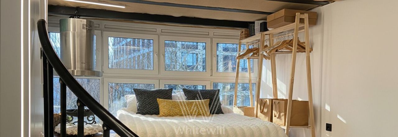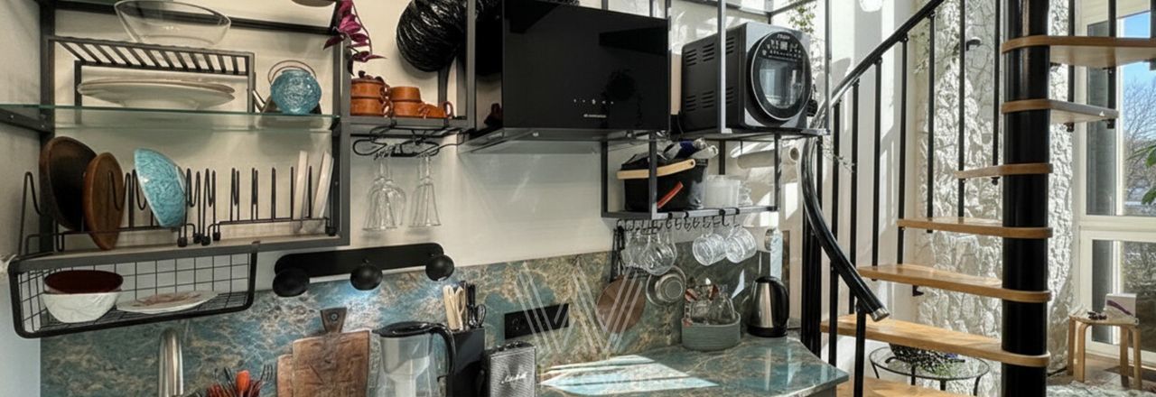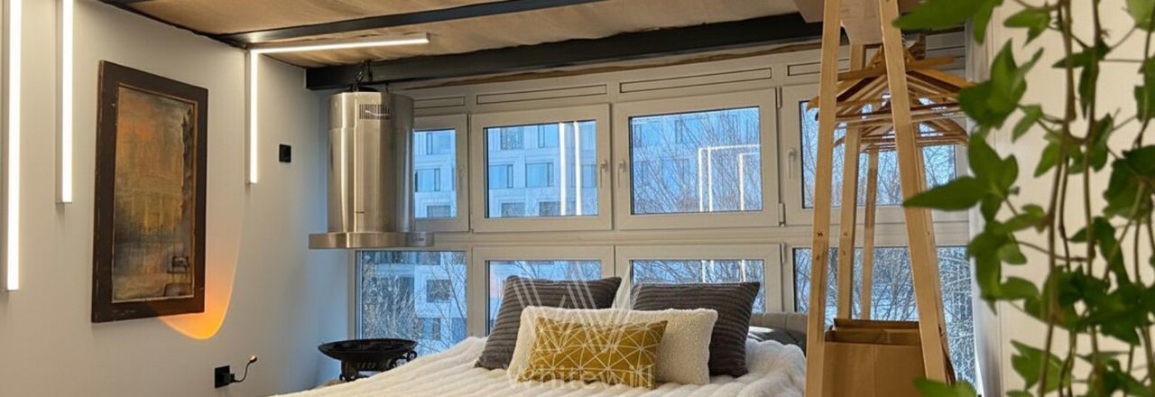 Трёхуровневые апартаменты с 1 спальней общей площадью 51 м² в комплексе "Варшавское шоссе, 17". Выполнена дизайнерская отделка с использованием натуральных материалов. Интерьер дополняют стильные элементы декора и эргономичная мебель. В спальне оборудована костровая чаша с вытяжкой для розжига ароматных трав. Панорамные окна и потолки высотой 5,6 метров наполняют пространство светом и воздухом.