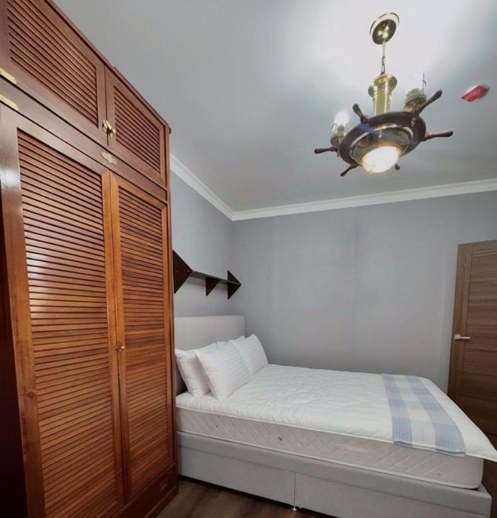 Есть кондиционер, гардеробная! Новая двуспальная кровать с матрасом. Письменный стол, Шкаф, Лоджия.