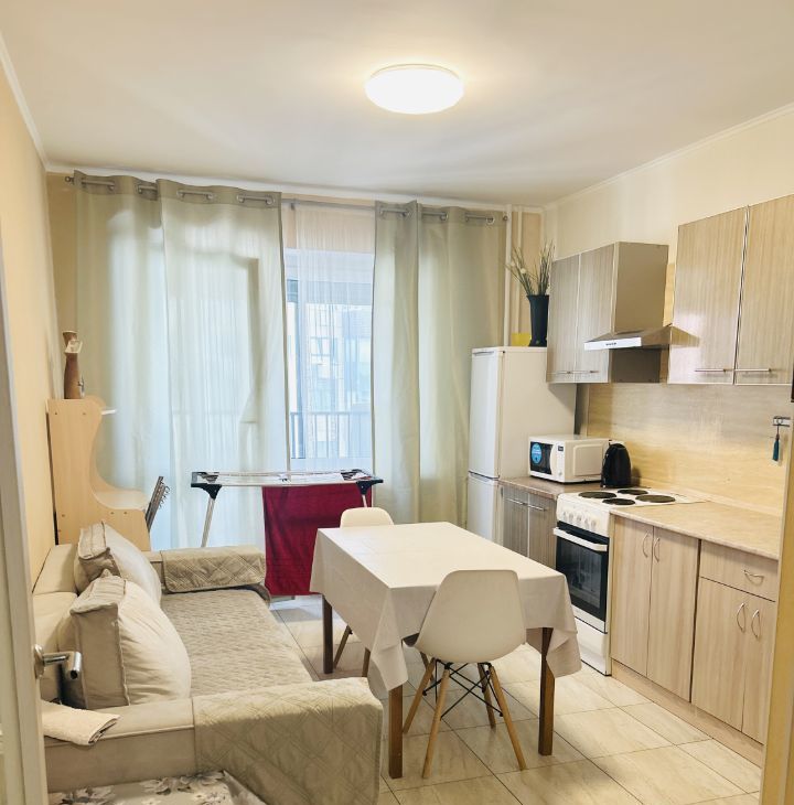 В квартире есть все необходимое для комфортного проживания. Совмещенный санузел оснащен ванной, что позволит вам расслабиться после долгого дня. Из техники в вашем распоряжении кондиционер, холодильник, телевизор и стиральная машина, поэтому все бытовые вопросы будут решены с легкостью.