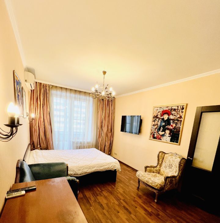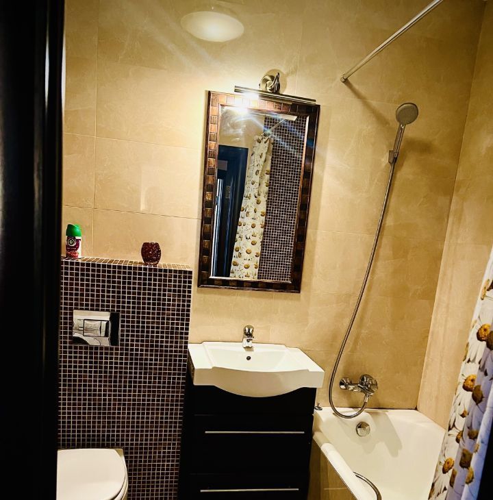 Квартира с евроремонтом, светлая и современная, с окнами на улицу. В комнате есть вся необходимая мебель для комфортного проживания. Кухня оборудована современной техникой: холодильник, посудомоечная машина и плита. В ванной комнате установлена ванна, есть стиральная машина. Также в квартире есть кондиционер и телевизор, а интернет проведен, поэтому можно сразу пользоваться всеми благами современного комфорта. На балконе можно насладиться утренним кофе или вечерним отдыхом.