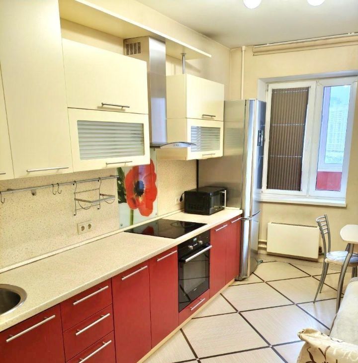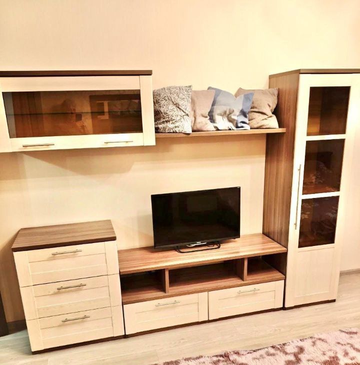 В квартире есть всё необходимое для комфортного проживания: современная мебель в комнате и кухне, кондиционер, холодильник и стиральная машина. Просторная кухня площадью 12 кв.м идеально подходит для семейных обедов и ужинов. Совмещённый санузел оборудован ванной, что позволяет расслабиться после насыщенного дня.