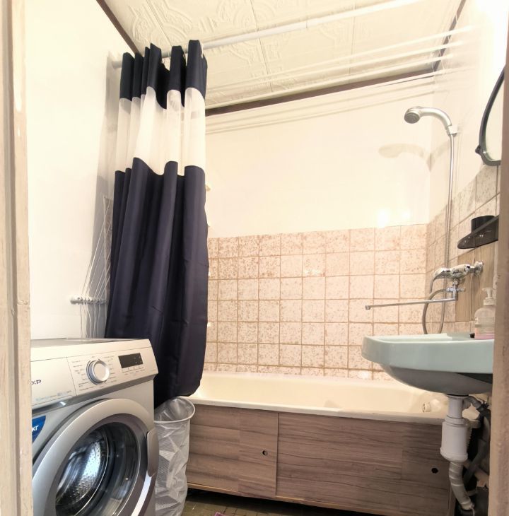 На кухне имеется мебель не новая) но всё опрятно чисто, также необходимая техника: холодильник, телевизор и стиральная машина.