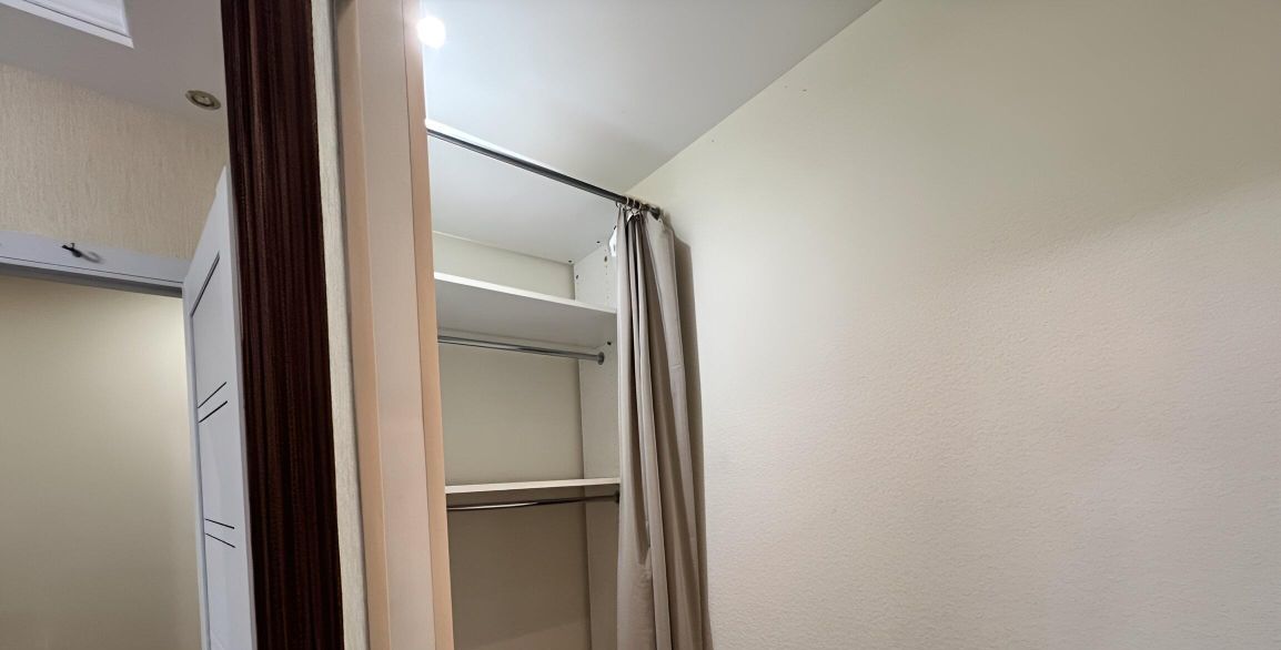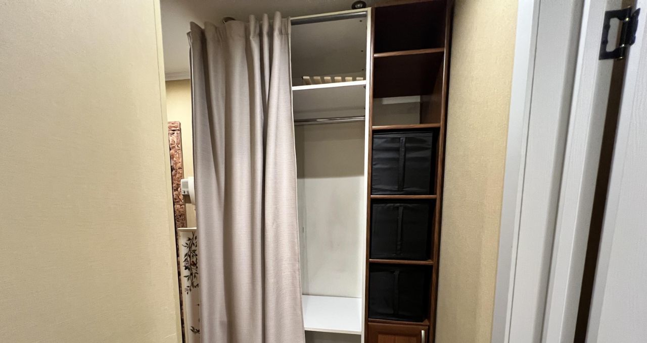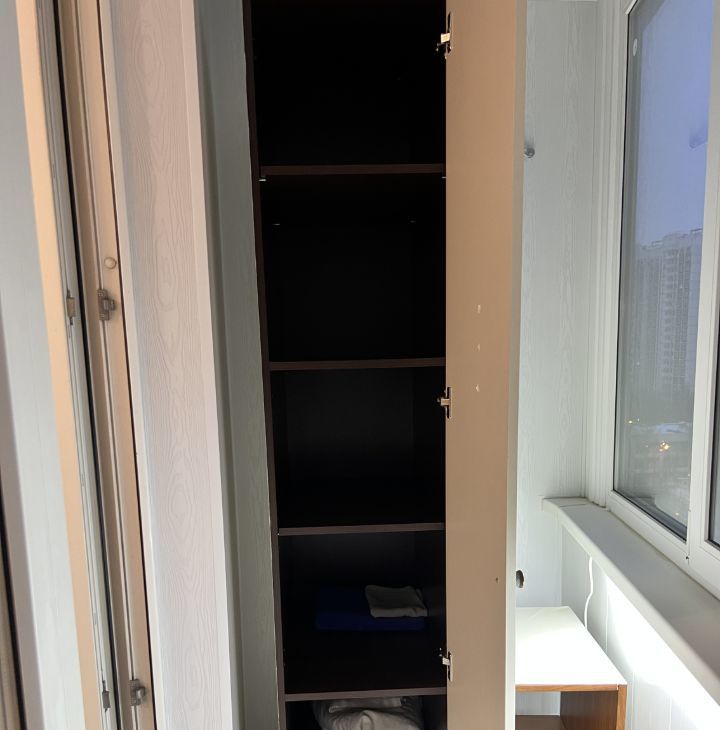 5. Балкон застеклен, сделан ремонт, стоит 2 шкафа для хранения вещей.
