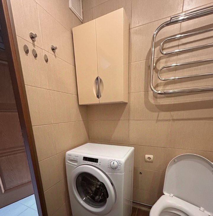 Стиральная машина автомат установлена в санузле .