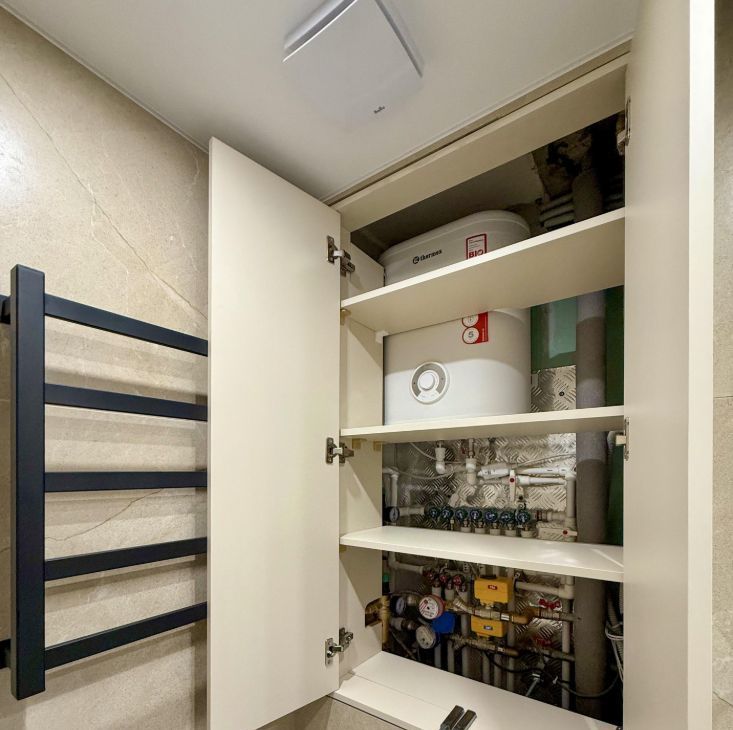 А именно: 2 кондиционера, посудомоечная машина 60см, мощный измельчитель бытовых отходов, бойлер на летнее время при отключении горячей воды в Москве, 2 ОГРОМНЫХ телевизора с Алисой и тд (см. видео).