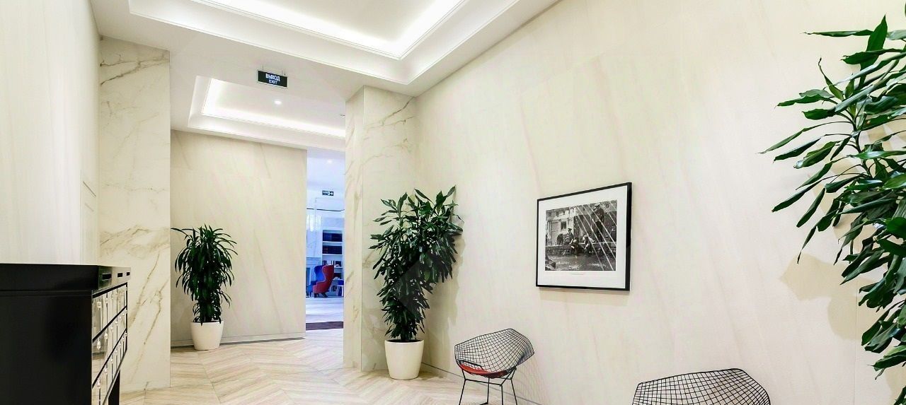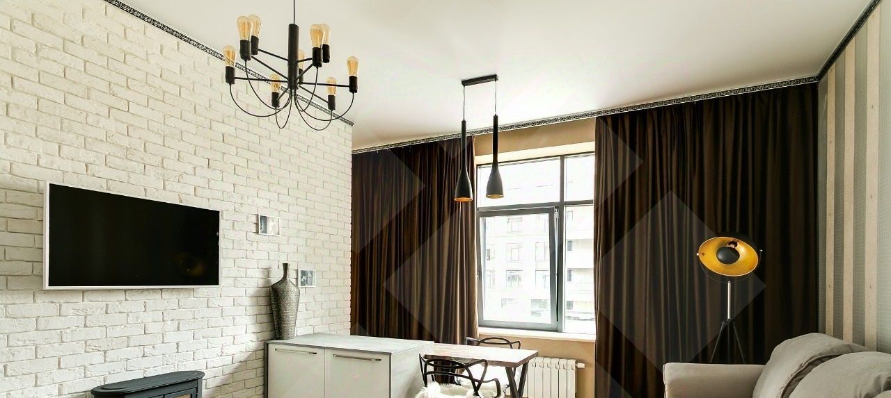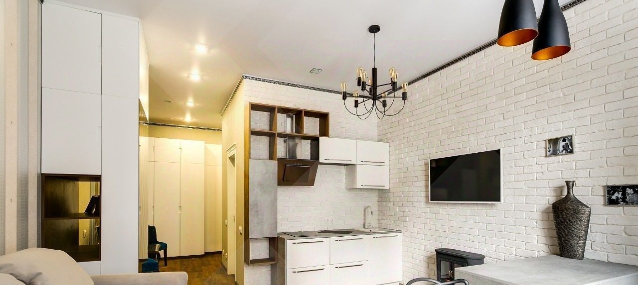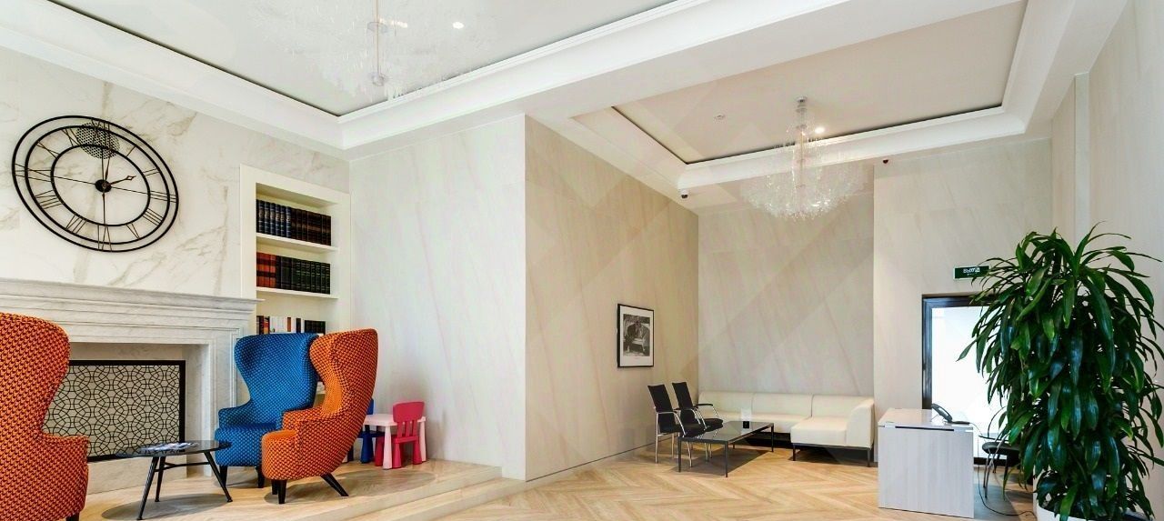 В апартаменте, площадью 37 кв.м. выполнен ремонт по индивидуальному дизайн проекту из экологически чистых материалов от ведущих мировых производителей. Грамотное зонирование дает возможность с удобством отдохнуть, поработать, приготовить любимое блюдо. Апартамент полностью укомплектован мебелью и техникой известных брендов. Кухня столовая с островом и камином. Панорамные окна во внутренний Парк, с великолепным видами на фасады в стиле ампир, зелень, фонтанами, зонами релакс, очень тихо и комфортно. В доме предусмотрен подземный паркинг, а так же большая гостевая парковка.