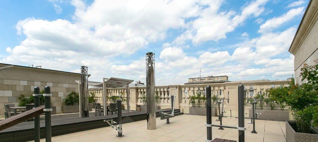 Квартира расположена в части дома Deluxe, клубного формата с вестибюлем, включающим зонами отдыха с камином и библиотекой и панорамным окнами высотой 5м, так же в этой части дома предусмотрено досуговое пространство крыши, С 1 мая крыша в Вашем распоряжении, не выходя из дома можно подняться на лифте, к Вашим услугам на крыше: