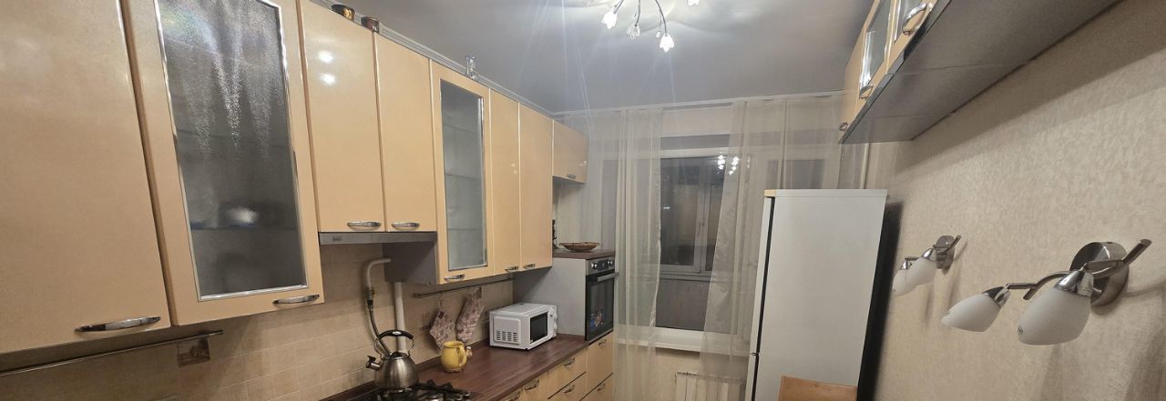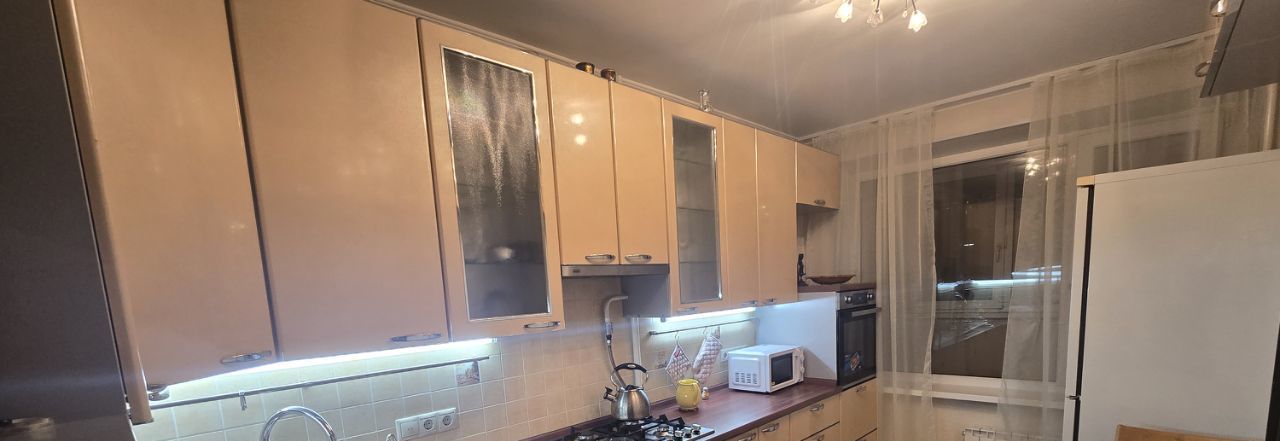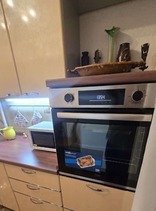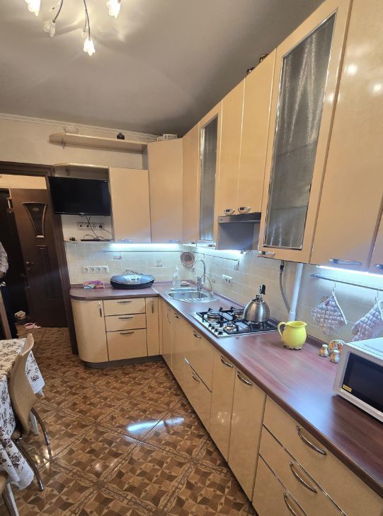 Большая кухня со встроенным гарнитуром и всей необходимой бытовой техникой, включая ПММ. Установлен хороший фильтр аквафор.