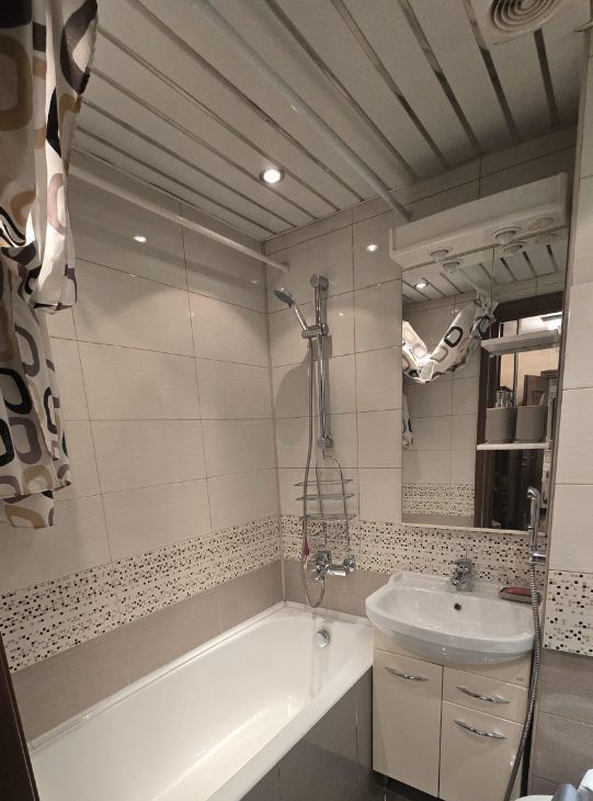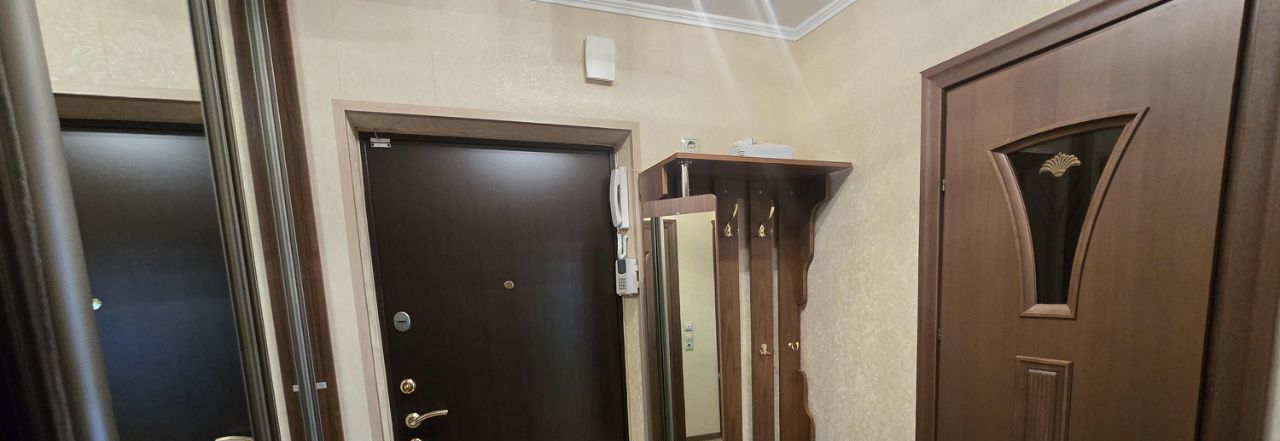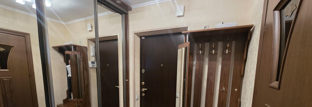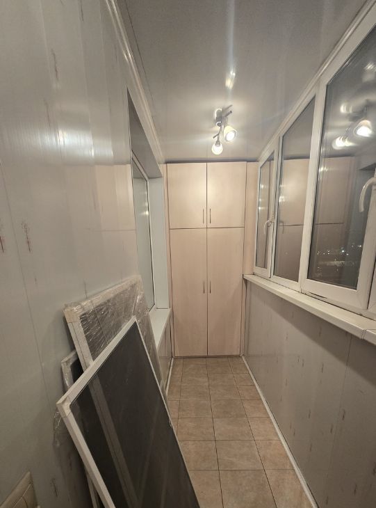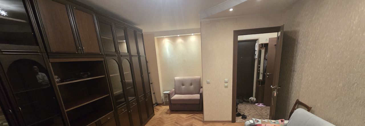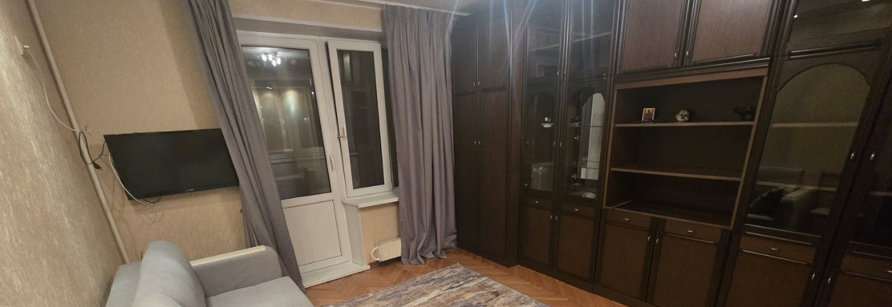 В комнате новый двуспальный раскладной диван и небольшой односпальный. В коридоре установлен большой встроенный шкаф. С/у совмещён. Лоджия застеклена и утеплена, есть тёплый пол.