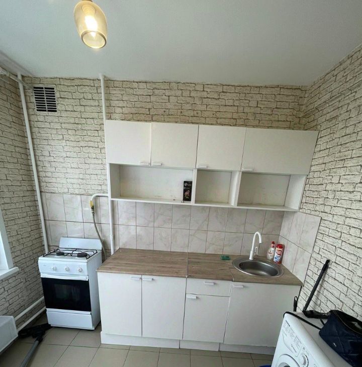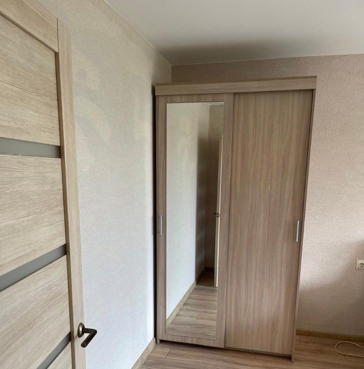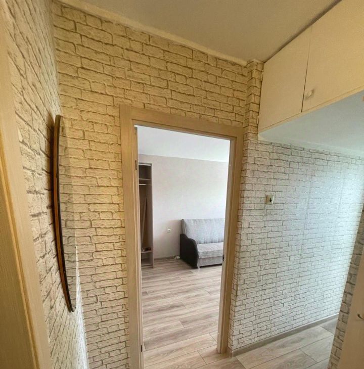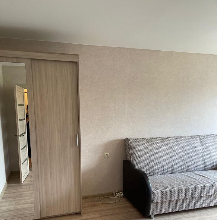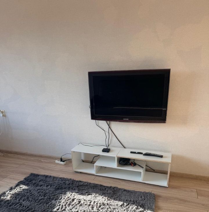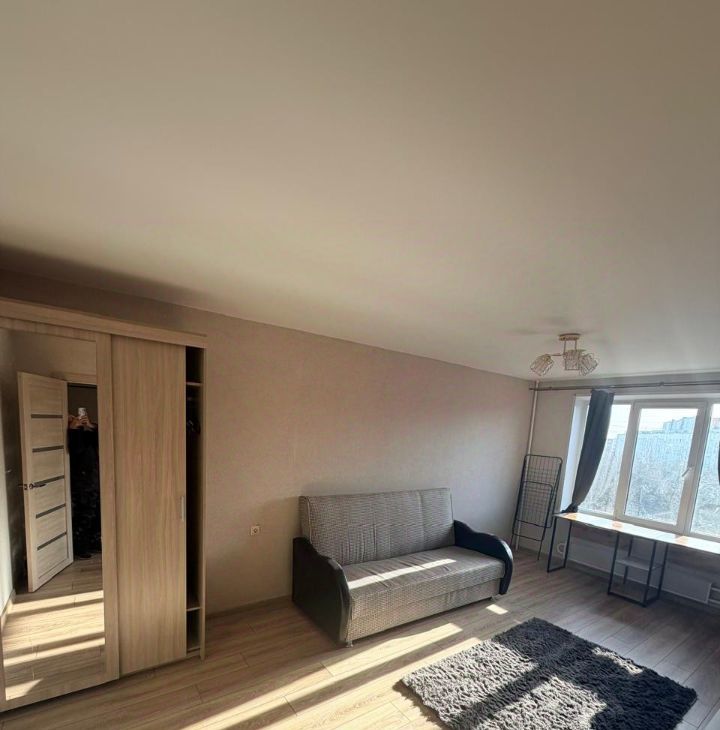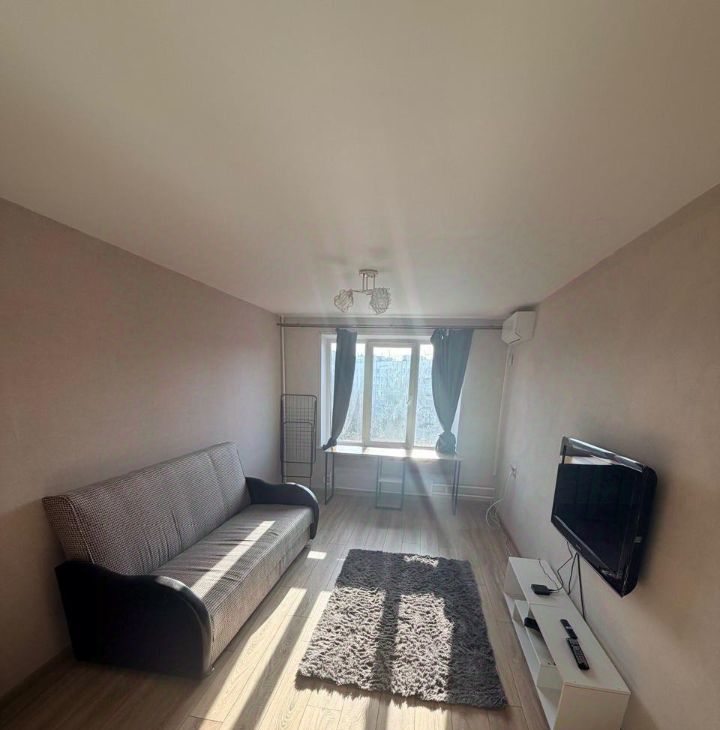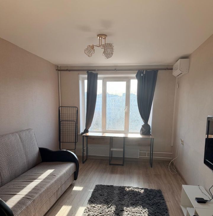 В комнате двуспальный диван, вместительный шкаф, оборудовано рабочее место. Удобная функциональная кухня. Практически новый кухонный гарнитур, стиральная машинка и холодильник. Чистая исправная сантехника. Проведен интернет. Кондиционер. На окнах стеклопакеты. В квартире тепло и тихо.