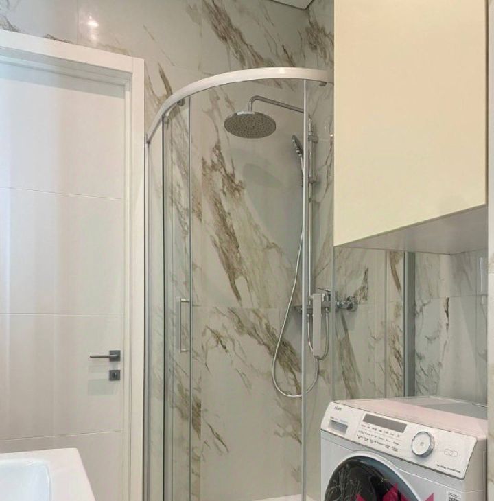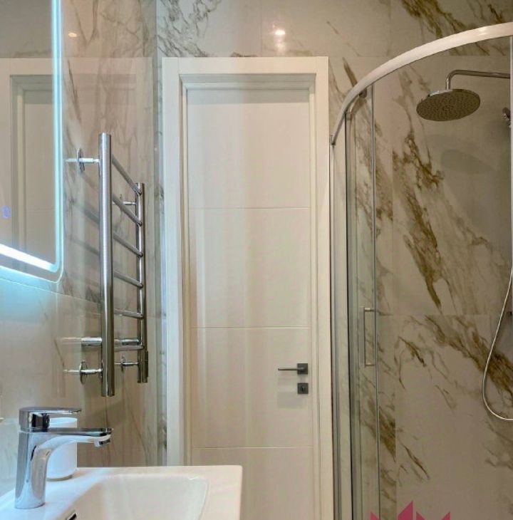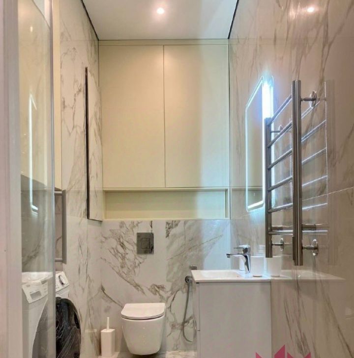 - Комфорт: В ванной — белая плитка, ванна, встроенное освещение.