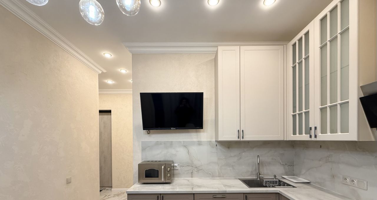 Квартира выполнена в дизайнерском стиле и полностью обставлена мебелью на кухне. В наличии вся необходимая техника: телевизор, холодильник, кондиционер, посудомоечная и стиральная машины. Ванная комната оборудована ванной. Окна выходят во двор, что обеспечивает дополнительное спокойствие и тишину.