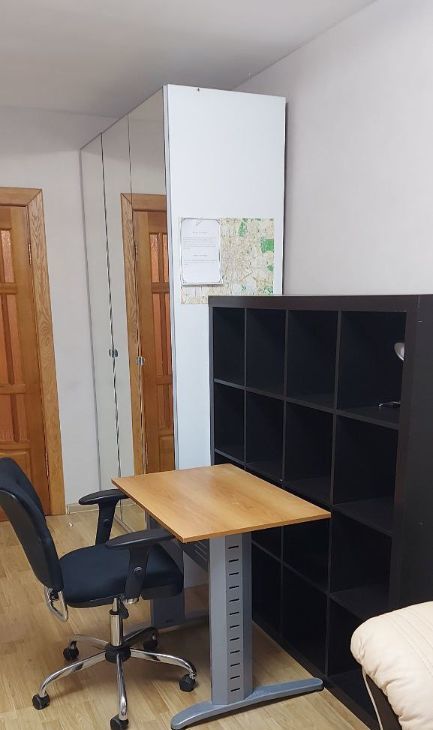 Комната светлая и функциональная, оснащена мебелью для хранения вещей, есть стол для работы, телевизор.
