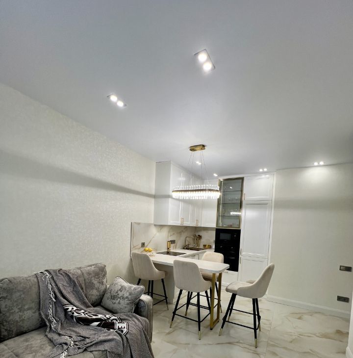 В квартире предусмотрены разные варианты освещения, которые могут подойти под любое настроение.